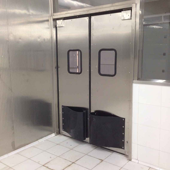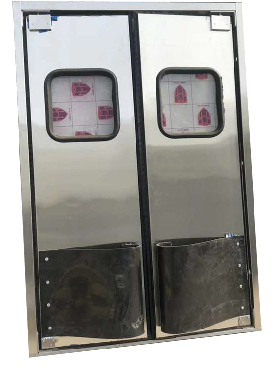 防撞門屬于耐沖擊,為自由式門行業強度高的,可以通過叉車的沖擊,在門體的設計和安裝方面都有特殊的處理和要求。門體堅固耐用,并且易維護,使用壽命長。滿足食品安全管理體系(危害分析和關鍵控制點)要求,整個全防銹防水處理,便于頻繁清洗,滿足高品質要求的環境,物流通道,叉車通道等客戶要求。參數:304#不銹鋼板 視察:厚實有機玻璃板,有效防止玻璃破碎飛濺導致的安全事故內部填充:木質結構 加強框:內部加厚碳鋼板,外部304#不銹鋼板覆蓋門體厚度:20MM 偏心軸:使門扇沿門軸心線方向傾斜,從而產生一個和開門方向相反分力使門輕輕自動復位,不用擔心門的回彈撞擊 防撞板:進口混合工程塑膠板,有高強度韌性,模具一體成型;視窗:進口透明視窗,不易碎裂,透明度高,有效防止玻璃破碎飛濺導致的安全事故; 密封條:耐撕裂,高彈性,耐低溫密封條(可耐零下40度低溫)雙門尺寸推薦:1800WW*2000H單門尺寸推薦:900WW*2000H
